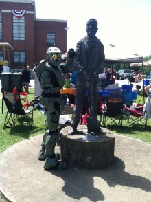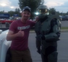 Recently Prego Magic, one of our Diehard members, was leaving a local restaurant after having dinner with his wife and saw a guy in a Master Chief outfit riding shotgun in a car driving by. Prego did what any true Halo Dieharder would do: he said “Get in the truck!” and chased him down for a picture! So we did what any true Halo Diehard website would do and we asked our member to track him down again for an interview.